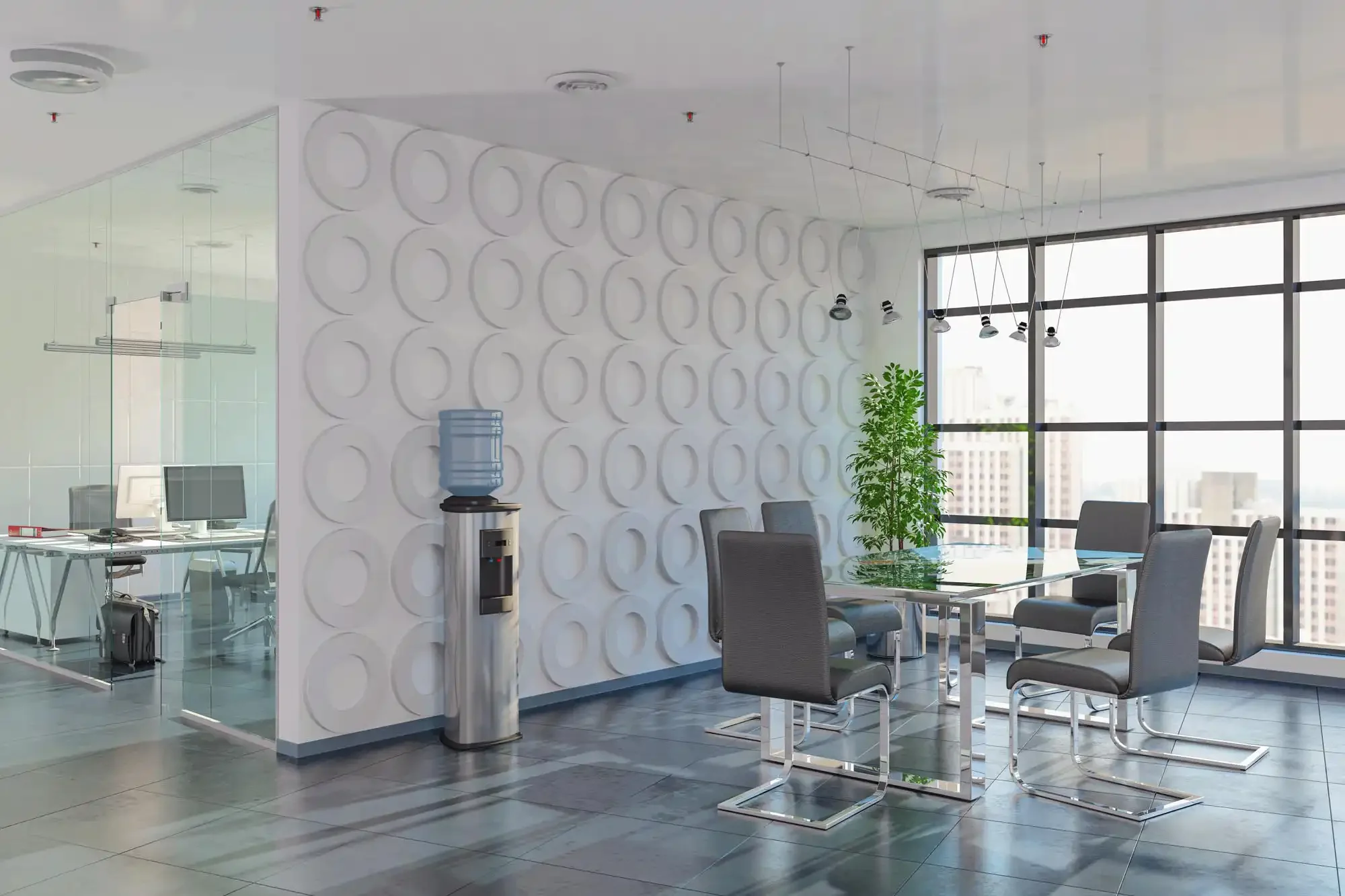 A clean and modern commercial waiting room with comfortable seating, demonstrating the ideal indoor climate control and air quality provided by professional HVAC services.